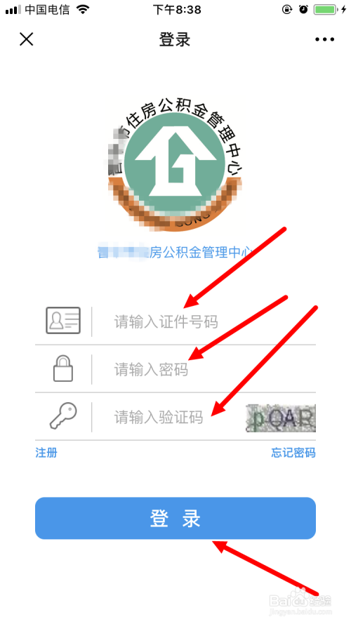输入 身份证号码 、查询密码 以及 验证码,点击 登岸 。