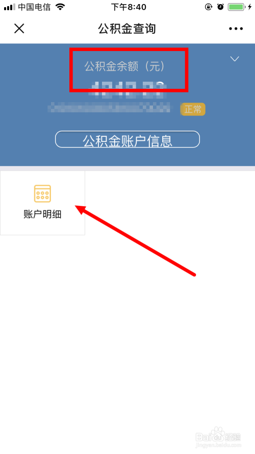 登录后,首先可以看到的是小我公积金账户余额。别的,点击 账户明细 。