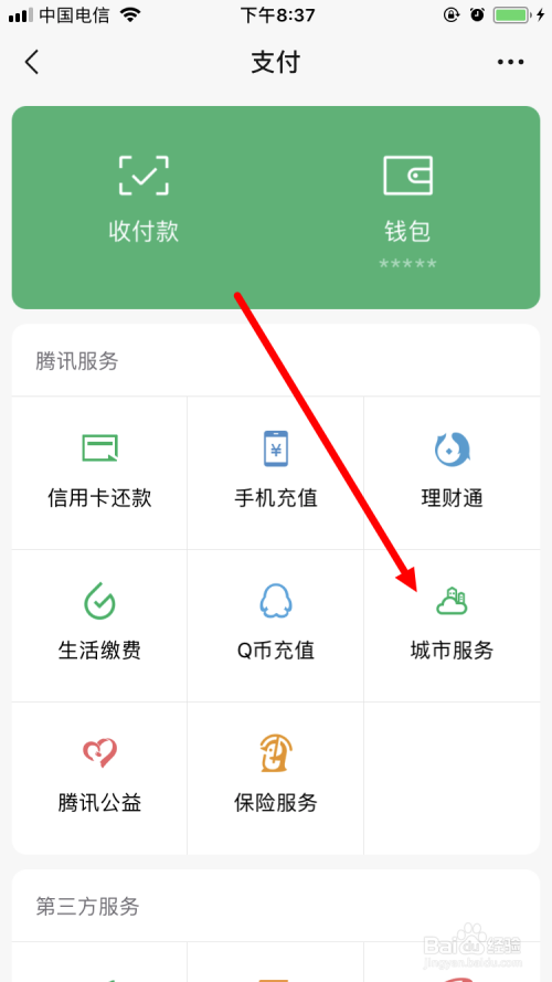 再在 支付 页面,点击 城市办事 。