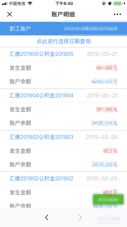 在这个页面后,就可看到小我公积金缴纳的时候、金额以及账户余额。