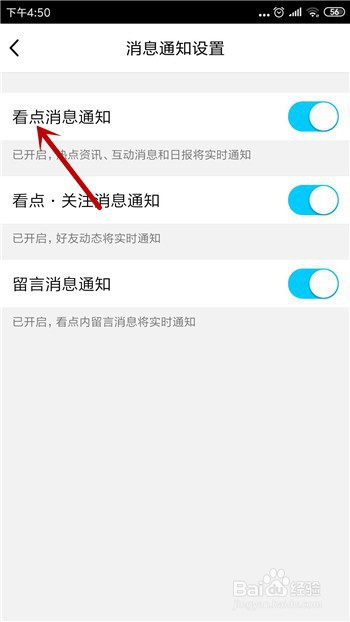 打开了动静通知设置界面后点击封闭【看点动静通知】。