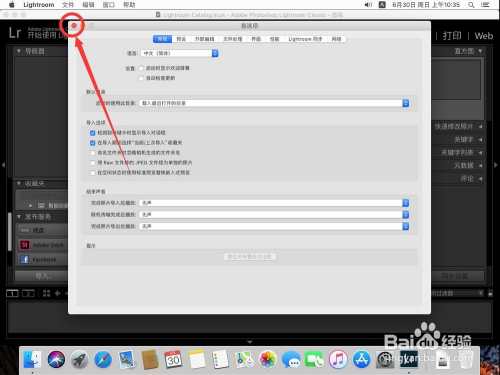 打开Lightroom后,点击屏幕左上角苹果标记右侧的”Lightroom“
