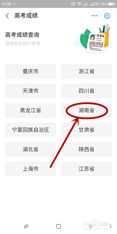 在新打开的“高考绩绩”页面,找到本身地点的省市(好比湖南省)单击(平台今朝只撑持部门省市)