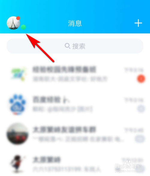 打开手机QQ,点选左上角的小我头像;
