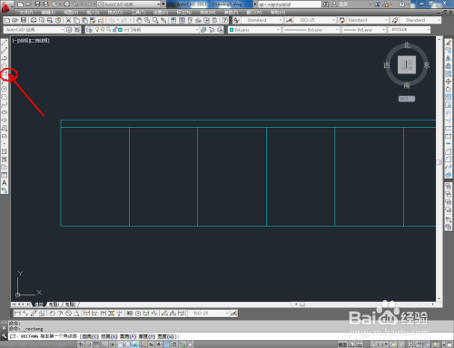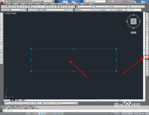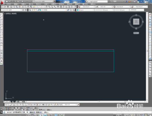 点击【矩形东西】按图示绘制出一个矩形图案后,点击【偏移】按图示在号令栏中输入偏移量并按下空格键,完当作矩形的偏移操作(如图所示);