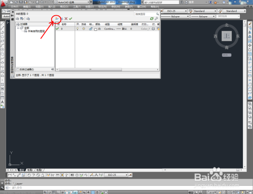 打开AutoCAD 2013软件,点击【图层特征办理器】,点击【新建图层】,将图层定名为:六门吊柜。点击色块,按图示设置一个图层颜色,完当作六门吊柜图层的设置(如图所示);
