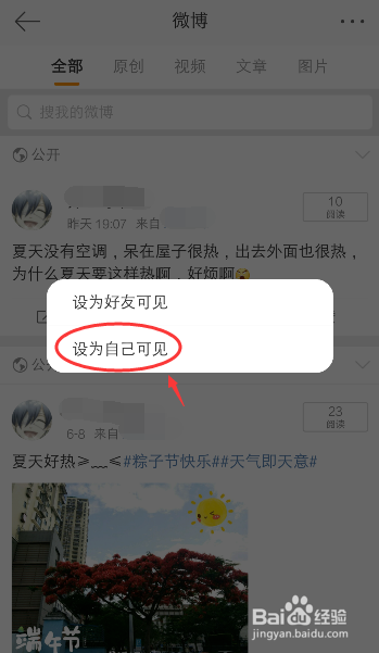 呈现窗口,按照你本身的设法,去设置可见体例,好比:设为本身可见。