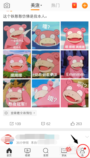 手机打开微博,进入首页,点击东西栏的【我】。