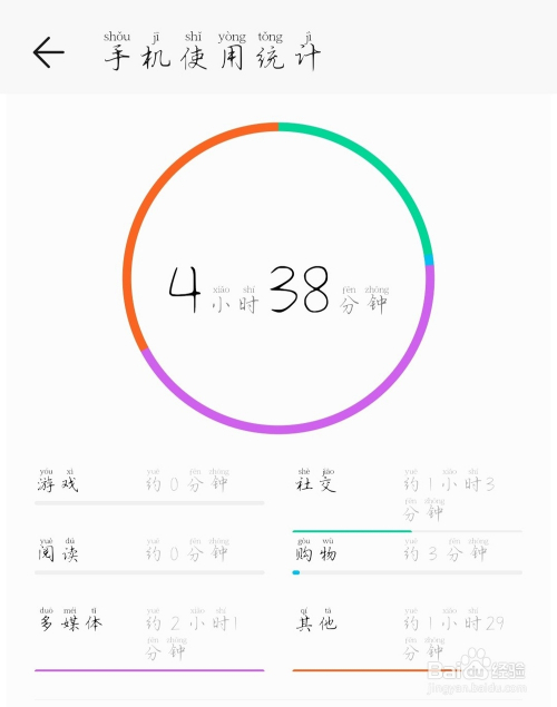 每一条目手机都应该有这一天你玩手机的时候,而且有分类统计,天天进行自我监察。