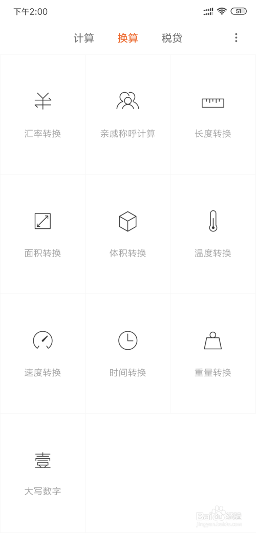 我们点击打开小米计较器,我们可以在计较旁边找到换算的选项。