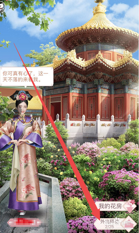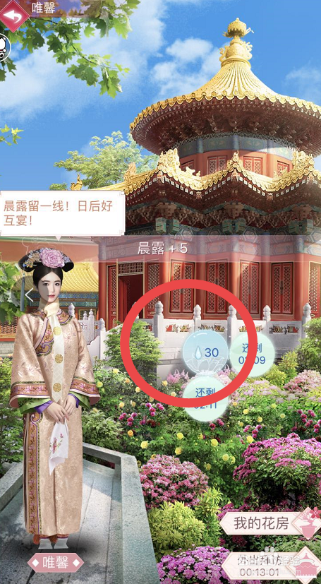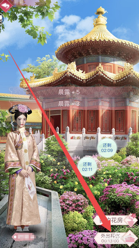 在外出拜访次数变为零之前不竭的点击外出拜访,就可以继续拜访了,当拜访的人的花房内有晨露的时辰就可以点击晨露获得一些晨露啦。