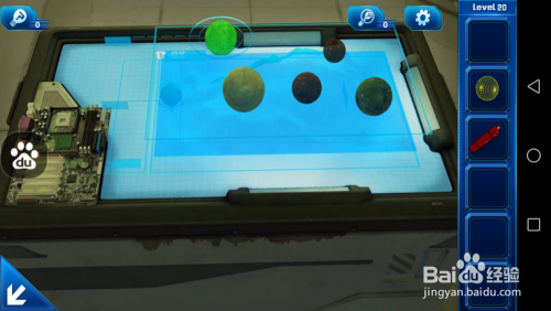 点击右面的显示器,操纵机械手将其打开,掏出里面的圆球。再点击中心的显示器,将电路板安装上并将里面的小游戏完当作。