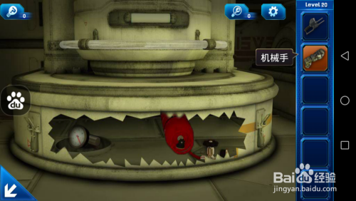 点击中心下方的圆柱体,操纵机械手将其打开,掏出里面的仪表及氧气瓶。