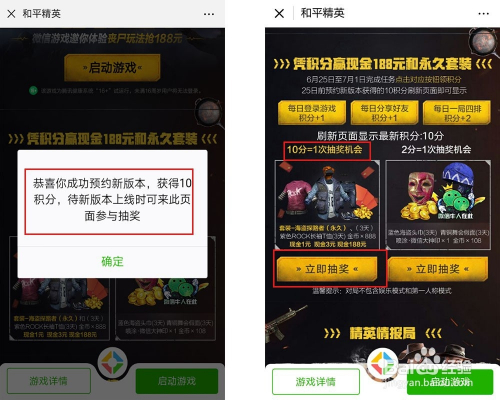 1打开微信在游戏里福利中间,有两个活动,一个是每日堆集积分抽奖和冲刺赛季抽奖.