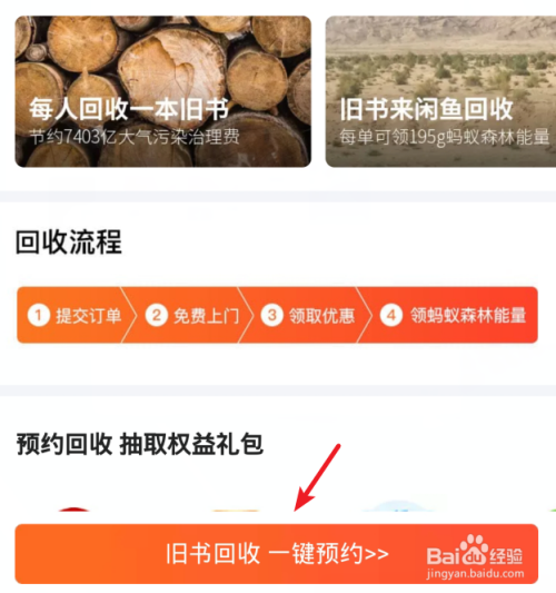 点击后,可以看到图书收受接管的流程,点击下方的旧书收受接管,一键预约的选项。