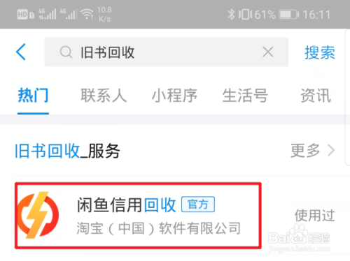 点击后,输入旧书收受接管进行搜刮,选择信用收受接管办事进入。