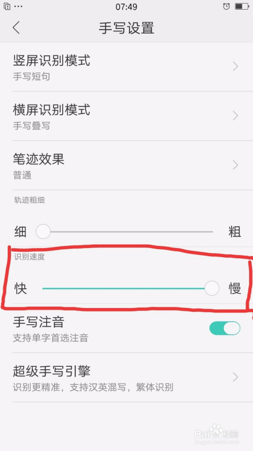 第六,有时还没写完一个字就竣事写字了,这时就可以 把识别速度往右拖动滑块变慢一些。