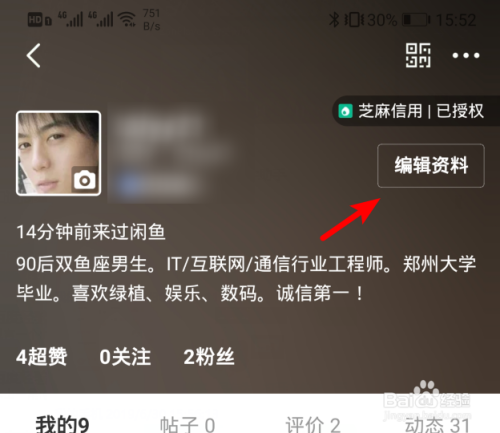 进入到小我资料界面,选择右侧的编纂资料的选项。