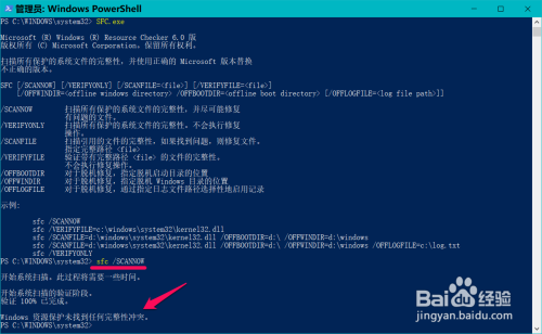 在 Windows SowerShell (办理员) 号令提醒符窗口中输入sfc /scannow 号令并按下键盘上的回车键,待其运行完当作,呈现:Windows 资本庇护将来找到任何完整性冲突。