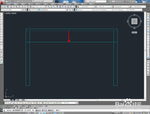 点击右边东西栏中的【偏移东西】,在号令栏输入偏移数值:150后,对图示线段进行偏移并调整好线段两段的节点位置;