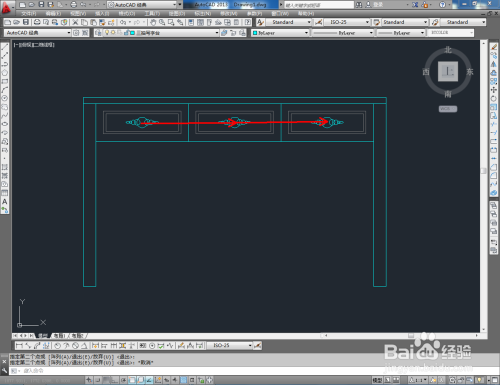最后,将建造好的拉手图块导入文件并调整好拉手的位置。完当作细节部门的建造后,我们的三抽写字台平面图便全数建造完当作。