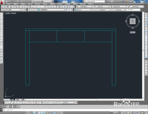 点击【画图】-【点】-【定命等分】,鼠标点击图示线段,在号令栏中输入:3并按下空格键,将选线等分为三等分。点击【直线东西】按图示绘制两条直线线段后,点击【矩形东西】绘制一个矩形图案。点击【偏移东西】按图示对矩形图案进行偏移(如图所示);