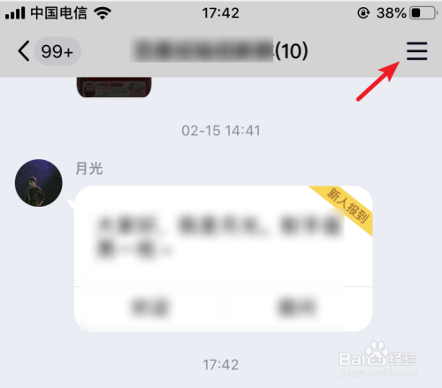 点击进入群聊天界面后,我们选择右上方三条横的图标。