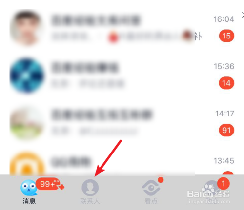 QQ群聊添加机械人,只有群办理和建立者才可以添加。进入手机QQ后,点击下方联系人的选项。