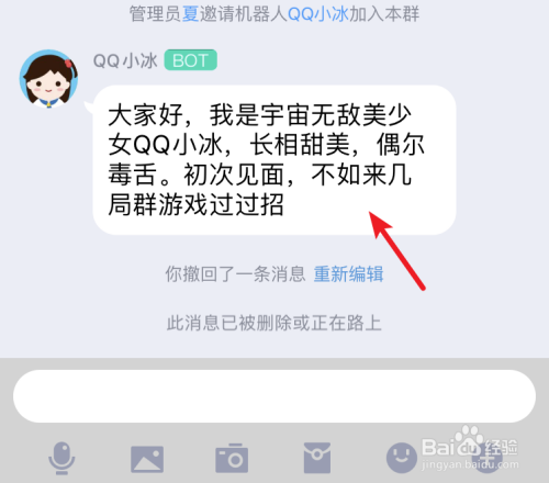 添加当作功后回到群聊界面,@群聊机械人即可与群聊机械人对话。