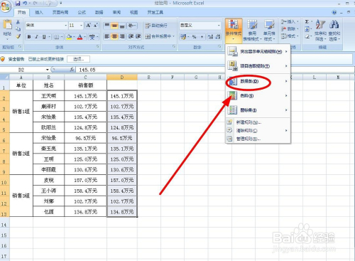 选中D2:D13,找到菜单栏“起头”选项卡下的“前提格局”单击