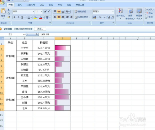 比力这些发卖人员的业绩,这些数据看起来有些费劲,需要把它们处置的直不雅些。复制C2:C13单位格到D2:D13