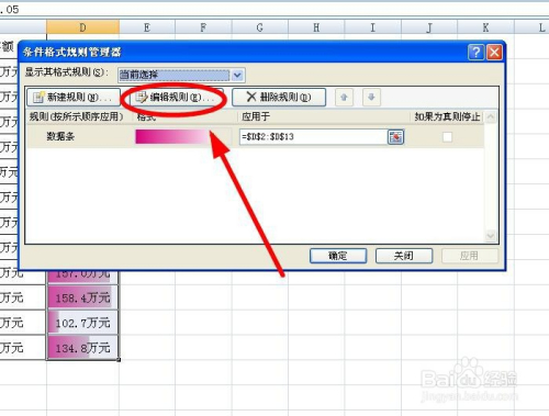 在打开的“前提格局法则办理器”对话框中,单击“编纂法则”选项