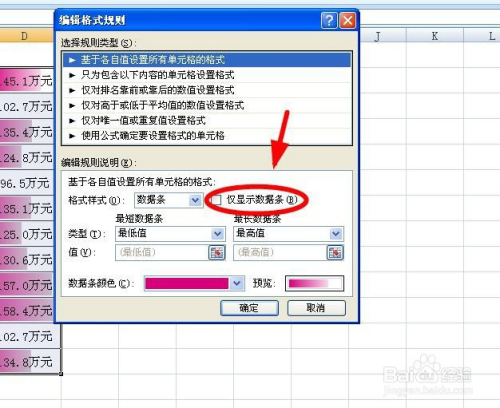 在弹出的“编纂格局法则”对话框中单击勾选“仅显示数据条”