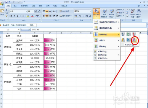 鄙人拉菜单中选择“数据条”下的本身中意的肆意类型单击