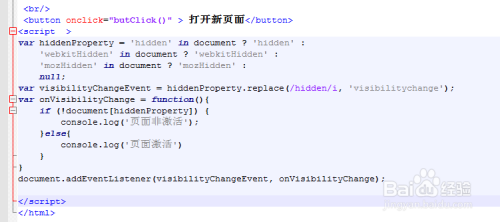 在html 页面中增添javascript代码,监听浏览器有onfocus 、onblur事务,触发这两个事务前,需要这个页面被onfocus