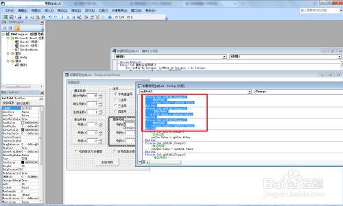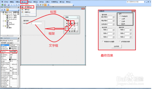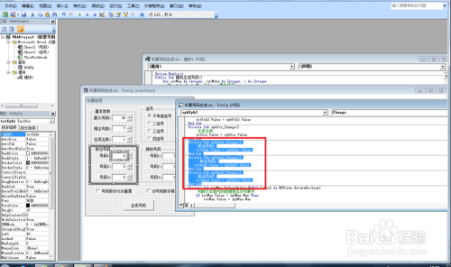 首先打开VBA编纂器(同时按alt+F11)——点击插入——窗体,把窗体拖沓变大一些并点窜窗体的caption属性,如点窜当作“号码生当作器”——插入框架并点窜窗体的caption属性,如根基参数——接着在第一个框架插入标签和文字框或者选项按钮。插入的窗体内容就按最张结果图那样插入。