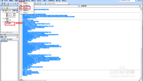 第七,接着点击插入——模块——然后在模块那边输入如下VBA代码: