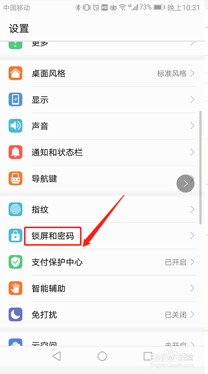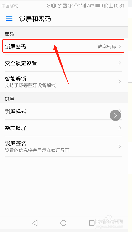进入后选择第一项锁屏密码,我利用的是数字密码