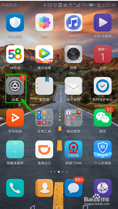 打开华为手机,进入设置