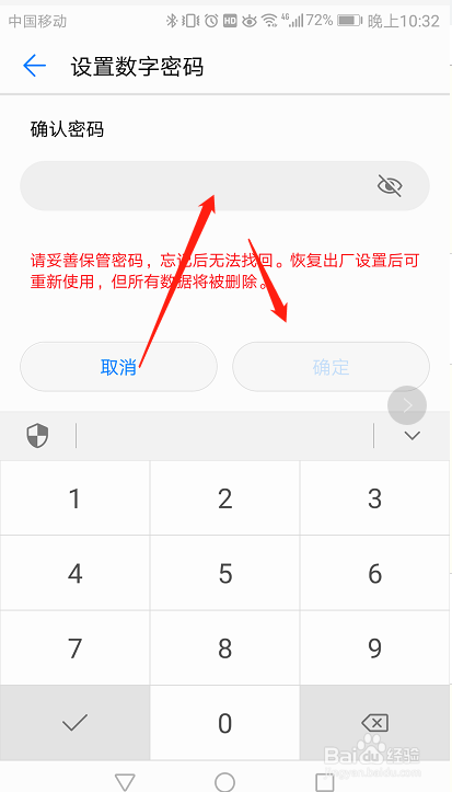 选择数字密码,也就是选择锁屏密码的体例