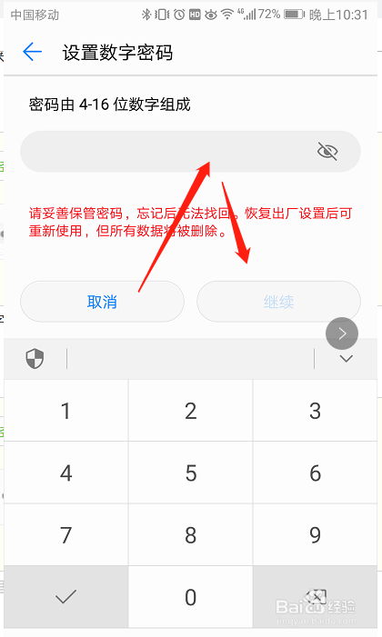 输入新密码的数字,然后点击继续