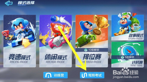 点击进入游戏今后,我们在最下方可以看到有个驾照测验,我们点击这个驾照测验,点击进入。