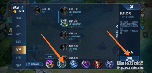 第2个出装就是抵当之靴可以增添110点神通防御,也可以现实环境出沉着之靴和隐忍之足。
