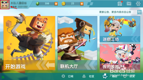 更新完毕后,打开迷你宿世界游戏,接着点击左上角小我头像。