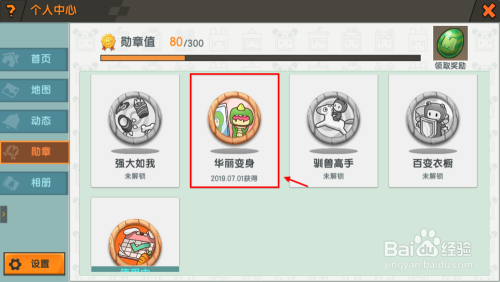 注:勋章上呈现红点申明当前有可解锁的内容(下文同)。