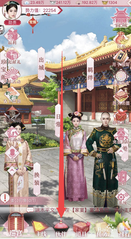 点击宫廷秘传手游,进入到坐在办事器之后点击底部菜单中的“伙伴”按钮,进入到伙伴列表页面。