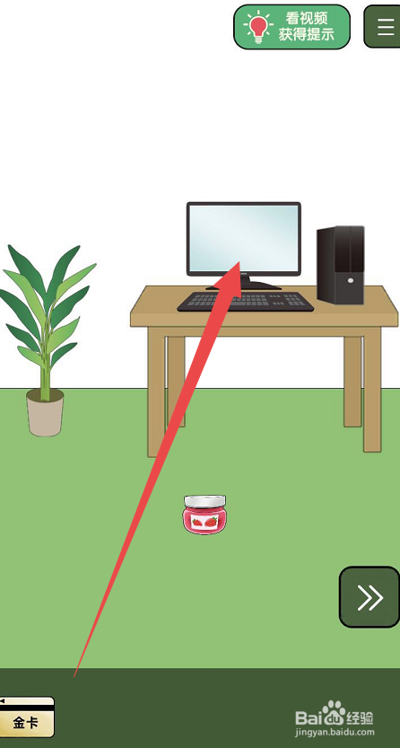 点击瓶盖子打不开手游的第九关,起头第九关的脑洞之旅。在挑战页面内可以看见布景中有一张桌子,桌子上面放着电脑的显示器和本家儿机,在桌子的左侧有一个盆栽,盆栽旁边有一个通俗的银行卡,点击收成银行卡。