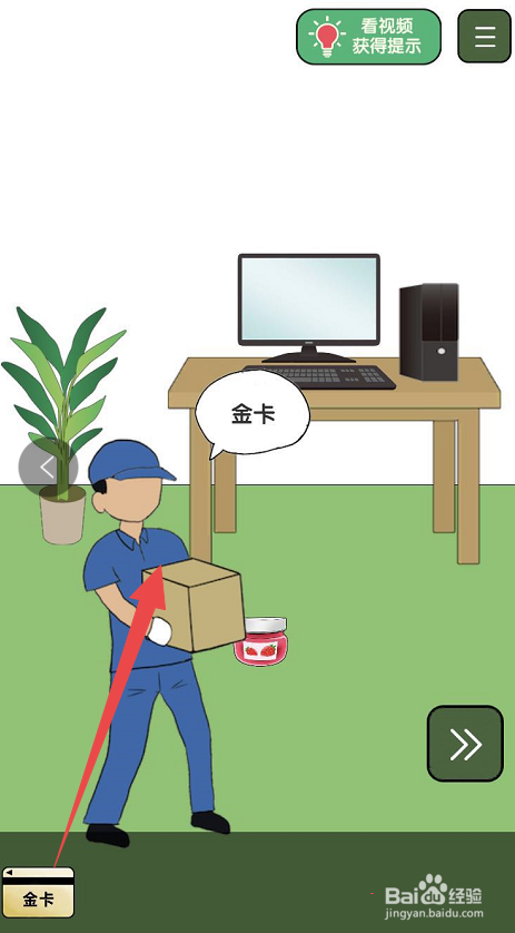之后会有一个快递员送一个包裹上门,将在右侧房间内收成的金卡交给快递员,快递员就会将包裹留下。