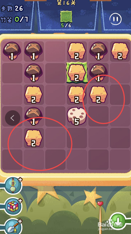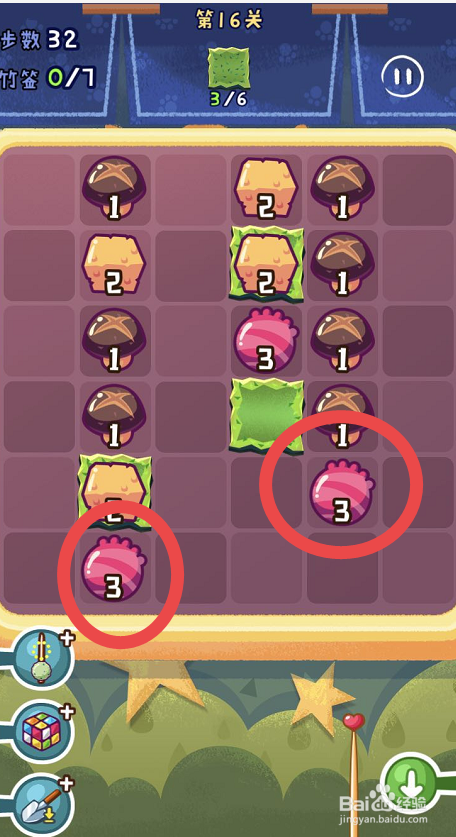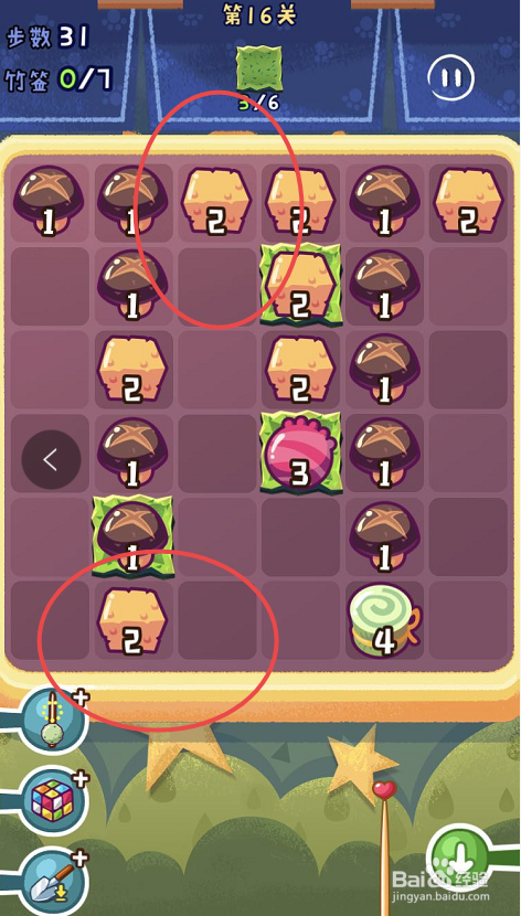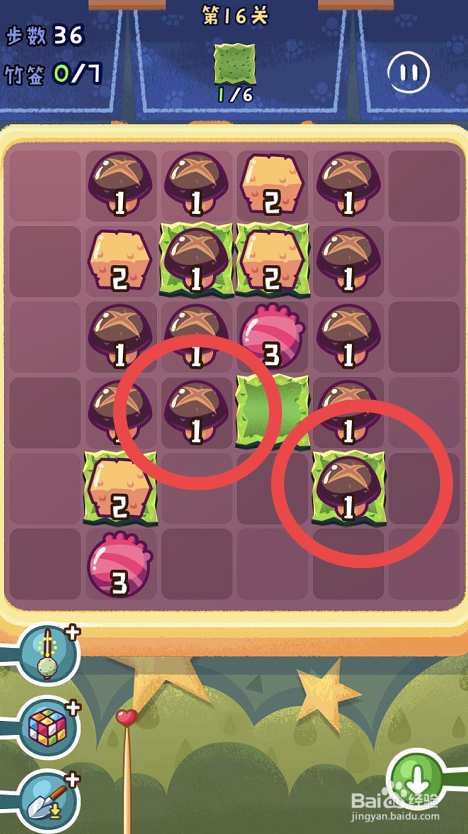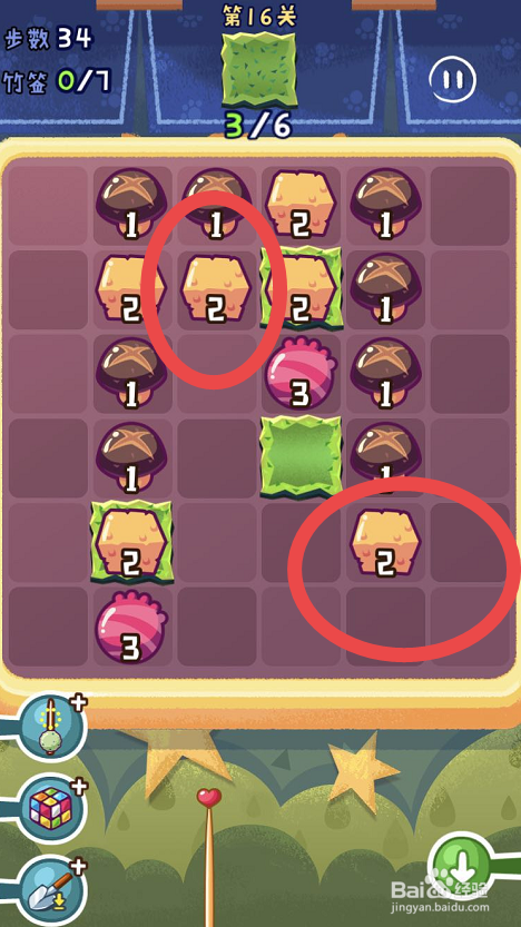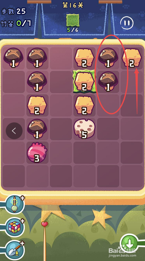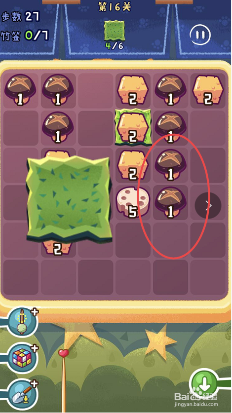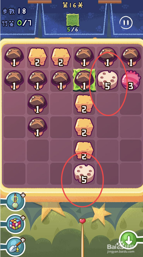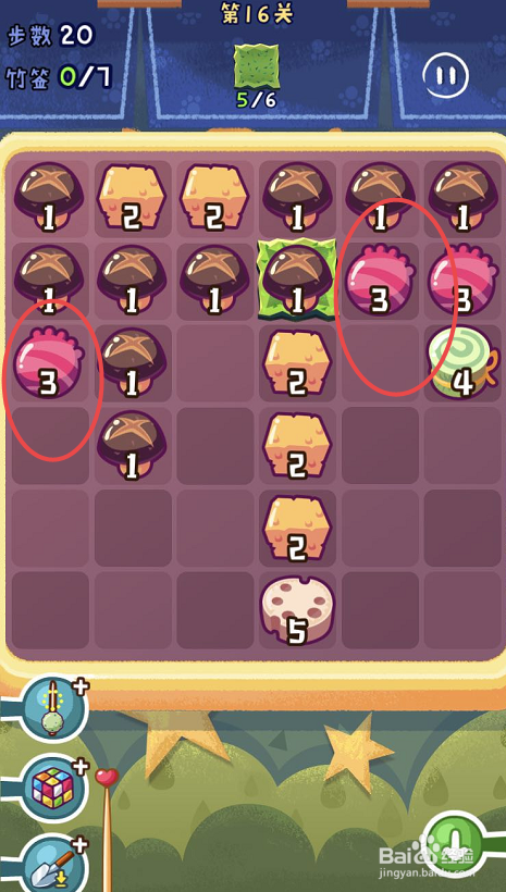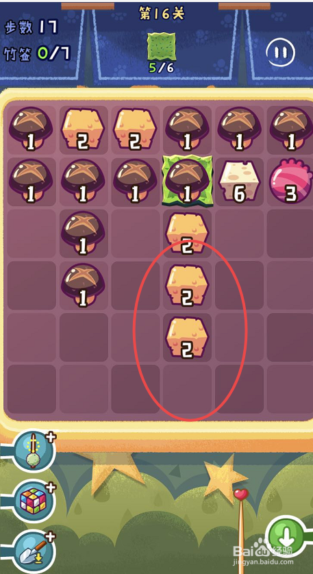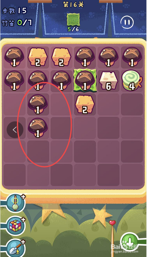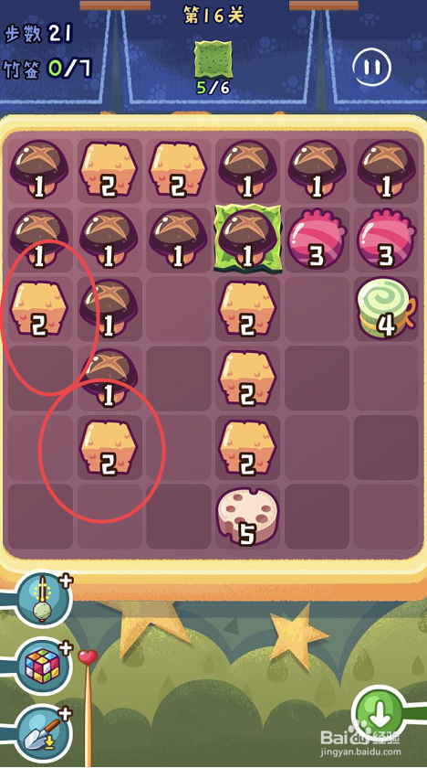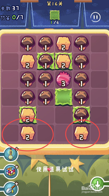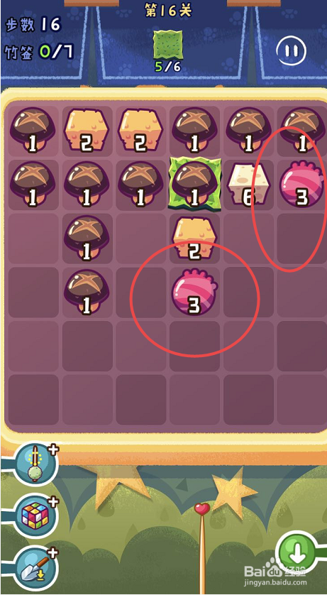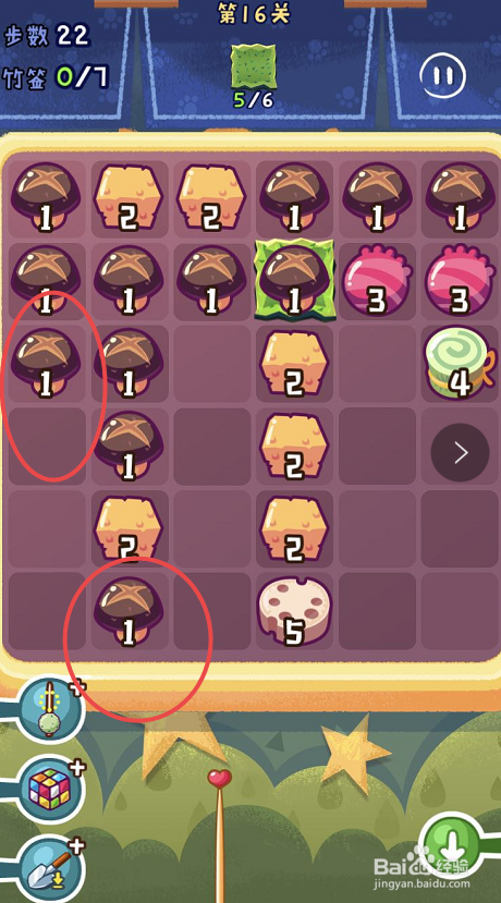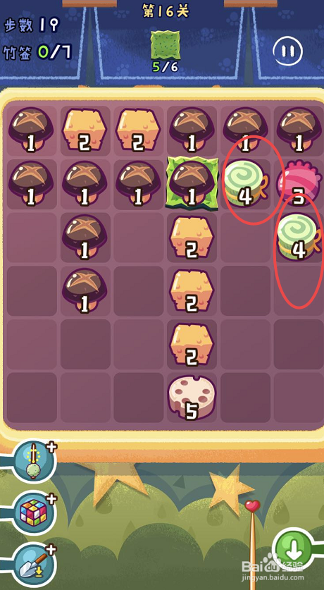 点击观光串串手游的第十六关,起头第十六关的串串之旅。第十六关需要获得六片海苔,可是一共只有三十八个步调。