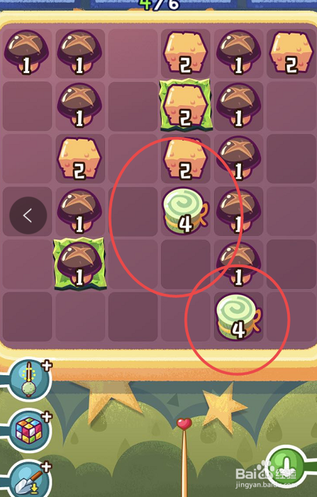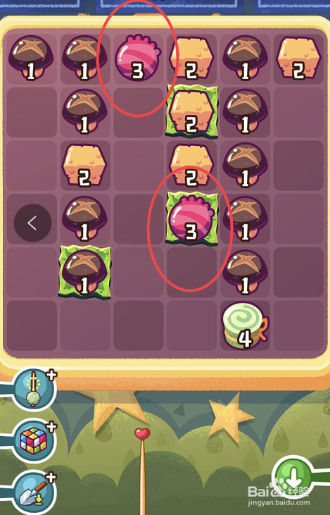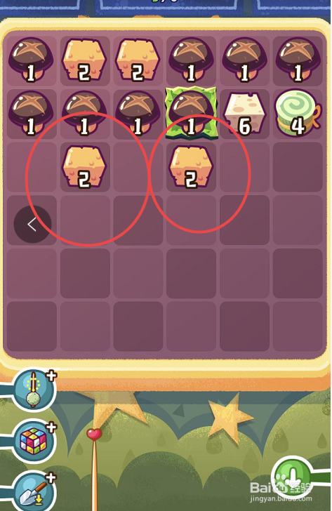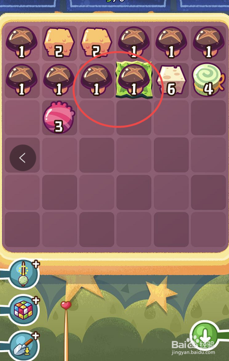 进入到具体的挑战页面之后,点击第三列的最后一个二级串串,再点击第二列的最后一个的二级串串,这样就可以在第二列合当作一个三级串串。之后会发现没有可以合当作的串串了,这时辰可以利用道具,将串串的排序从头打乱。